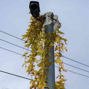 休日散歩2021.11.21📷️マンションの防犯カメラに、あんなに高い所に絡まっていました。
