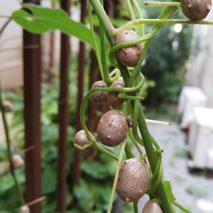 こんにちは☺️ この実は今日のお花 カラスウリでしょうか❓ イマイチ自信がありません😅 ⇒カラスウリと教えて頂きました💚 ありがとうございます😆❤ 茶色の実はヤマノイモのムカゴと教えて頂きました‼️ 今年は、1度は見る価値があるという美しいカラスウリの花を涼みがてら夜の散歩🚶♀️に出てチャンスの機会を増やしたいです✊✨ 昨年9月