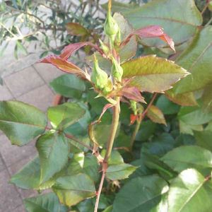 こんにちは😊 薔薇「フォーユアホーム」さんの蕾🌹 チュウレンバチを見かけたので毎朝、チェックしています。