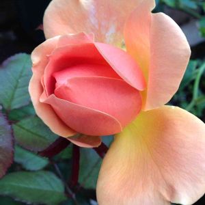 ロイヤルサンセット🌹 今朝、蕾が少し開きかけていましたが、次に見た時は開花してました(*´∀`)♪