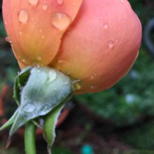 雨に濡れたロイヤルサンセット❣️ お花の真ん中にホオズキが入ってるみたい😄🎶