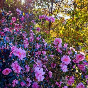 久しぶりに、百合が原公園の温室へお散歩🚶♀️🚶♀️🚶♀️ いつのまにか椿が花盛りに✨✨ たくさん咲いてると見応えあるなぁ😍 ちょっと、遠いけど。 タグも見えません😅 (別日にタグを確認、サザンカ)