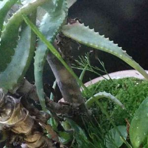 アロエの鉢に、何か変なのが生えてて。 この真っ直ぐに伸びてる子。 シダの本を見てたら名前が解った❗️ シダ植物で、トクサの下に載ってました。