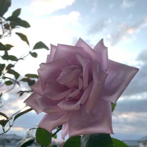 今年の6月に楽天の“ばらの家さん”で購入したマダムヴィオレです🌹 四季咲き 大輪 剣弁高芯咲 微香 藤色 届いてこのお花で4つ目の開花になります 台風で一時は折れてしまうかと思いましたが支柱やらで補強し頑張って耐えて今までで市場立派なお花を咲かせてくれました✨