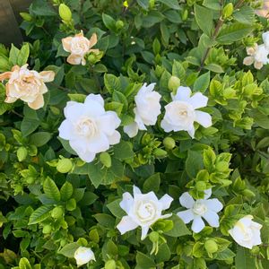 おはようございます👋 2年前に苗をいただき初の開花🤍 八重咲きクチナシが咲きました😊 白くて綺麗なお花が咲く前から いい香りがしています😊🎶 終わりの頃は白~クリーム色に 変わって行きます🙌