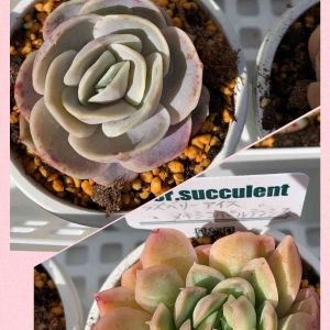 ✨✨ビューティーズ✨✨ part 9 時計回りで(左上より) アメイジンググレイス ('19秋冬 ヤフオク) エレガンス (Dec'19 錦玉園) ブルーサプライズ (May'20 socio) アメイジンググレイス (Dec'20 sweet) キャラリアン (Dec'20 sweet) キャラリアン (Nov'20 トロピカルガーデン) ルンデリーXトリマネンシス ('20春夏 松井田バラ園) 先日は沢山のお祝いメッセージをありがとうございました(*´꒳`*)♡ 皆様の温かい応援は投稿を続けていく原動力になります。これからも多肉ちゃんたちの可愛さを皆様にお届けできるよう頑張りたいと思います☺️✨ 大きいアメイジンググレイスは前に投稿した後の寒波で、せっかく綺麗だった姿を外葉2周分くらいやられてしまいました😭 もうダメだと思い、保険株を購入後になんとか持ち堪えてくれ、また私の目を楽しませてくれてます☺️✨二代目アメちゃんはまだ小さいですがピンクピンクで可愛いです🤗💕 エレガンス、ブルーサプライズは葉が薄いので実はもう葉焼けを発見‼️ ここ最近の日差しの強さは薄葉系、濃色系の子達には危険でした😱💦慌てて今日エケちゃん達の配置換えをしましたよ💦 キャラリアンの2人は見た目は似てますが色が違います!どっちが好きか?ハイ、もちろんどっちも好きです😆♡🎶 ルンデリーXトリマネンシスの交配の子は最初はうーんでした😓 毛があるんです、毛が‼️でも秋以降徐々に紅葉してきて足元に子株ちゃんが出てくると私の気持ちに変化が生まれ、今ではちょっと気になる存在の子になりましたよ😊👍