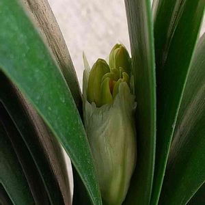 R2.2.28 クンシランの花芽、蕾が見えてきました。\(^^)/ 今年は暖冬ということもあり、ビニールをかけて外で冬越ししました。 横に子株が出てるので今年は株分けしようかな?🤔