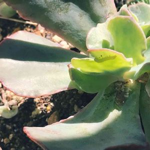 フリフリ多肉さん☺️ チョンパしてから地植えに飢えていたら、新しい芽が2つ出ていて❤️喜んでいた矢先に!! 腹ペコ青虫🐛 キャベツじゃないからね〜(;´༎ຶД༎ຶ`)