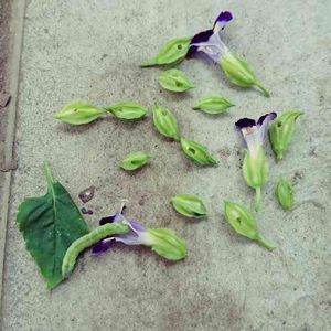 可愛いらしい、金平糖のような花が沢山咲きました❣️ 3年位前に一株だけ植えたのに 足の踏み場が無い位に増殖😥 葉っぱの穴の犯人はバッタさんだけでは無いようで、青虫さんが映り込んでました❗️