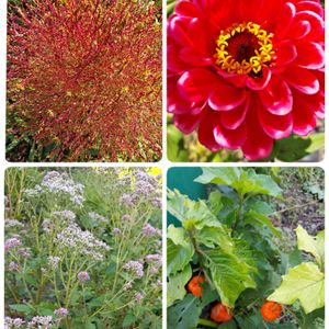 こんにちは👋😃 日中は まだ暑いですが 風が爽やかで 気持ちよく 畑仕事はに励んでいます。🤗 畑のコンポウトの鬼灯は赤い実を付けて 葉っぱも綺麗です。フジバカマも満開 コキアも紅葉🍁 大輪ジニアさんも綺麗です。❣️