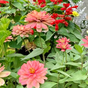 花壇のジニアたち🎵 手前が零れ種㌠‼️奥に種蒔き㌠❤️