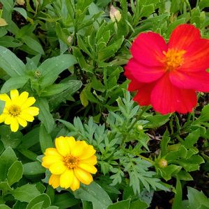 ジニアとキバナコスモス‼️ こぼれ種から咲きました🎵