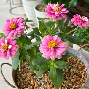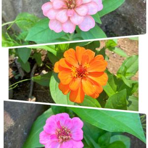 種蒔き組のジニアです‼️ GWに撒いて約2か月… まずはピンクとオレンジが咲きました🎵