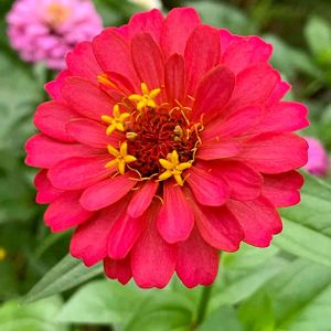 ヒャクニチソウ(百日草)が咲いていました。 夏から秋までの百日という長い間咲き続けるということでの和名✨ ジニアとも呼ばれます🌼 暑さ✨☀✨に強いのでしょう🎶😃