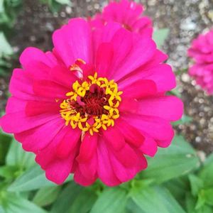 最近のジニア 百日草は多色で綺麗な色もたくさん出てますよね〜 花も小輪から大輪まで。咲き方も少しずつ違います。 目の覚めるようなピンク 義母がこんな色が好きでした🌸