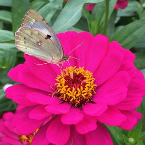 春に父が貰ってきたジニア(百日草)の苗。 株が華奢ですぐ枯れると思っていたのに地植えにしたらとっても元気です! 百日草の名の通り次々と咲いてくれて、茎が細いけどしっかりしてるので少々の雨ではヘタレない強い子でした✨ あまり気にしたことのない花でしたが一気に好きな花になりました(*´◒`*)