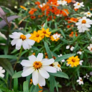 まるっと花びら列なる🌼 百日草!和風でかわいいです 白と黄色が咲いています❁❁❁