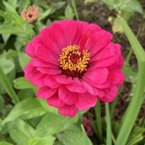 今日の庭から 去年、種まきして育てたジャイアントライム(百日草)さんの種から生まれたと思うんですが、ちょっと様相が変わってしまいましたね~😅 去年は、八重咲きのまん丸可愛い子だったんですけどねぇ🤔 やっぱり自家採りの種は難しいなぁ😰