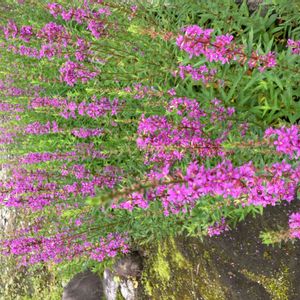 ミソハギ 。2019年、苗を購入して地植え。水生植物(陸でも育つ)とのことで、雨樋の下の水が溜まったり乾いたりする場所に植えてあります。禊萩、精霊花という名はお盆のころに咲くかららしいですね。うちの庭は、今この花とナデシコ、コレオプシス「ガーネット」が隣り合って咲いて、ピンク祭りと化しています。もっと時期がずれると思ってたんだけどな😅