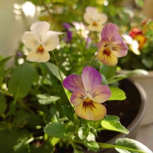 フィオリーナ ついに我が家にお迎えしましたよ~👍️ 根張りも良くて今後の成長に期待です😍 少し徒長気味だったので切り戻した枝で挿し芽もしちゃいました😁 さて、成功するのか?? 右下の写真は先週寄せ植えした よく咲くすみれ3色Mix こちらも大きく育ちますように🎵