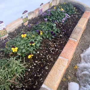 庭に咲いている(雪に埋もれている) パンビオ達です😄 強さにはつくづく驚かされます✨ ビオラは、 フィオリーナ シエルブリエ アールヌーボー など有名どころも、初めて育てております✨
