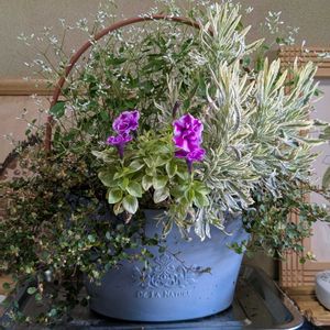 夏の玄関先 おたまちゃんのロスフラワー市でお迎えして数年、うんともすんとも言わなかっ たけどやっと少し花が着い たブーゲンビリア朝日も西日もガンガン当たる塀の上に置いたのが良かったのかもしれません。 GreenSnapのご縁で地元で集まった植物たち元気です。(バラカフェオレ)←間違えたカフェラテシコンノボタン ルリヤナギ ケイトウ霧島の秋&コリー 感謝☺️ パープルファウンテングラスは室内で冬越しして今は外でワサワサ茂っています。