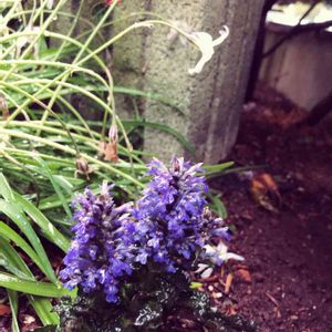 お早うございます☁️ 雨の後🌨でも綺麗に健気に咲いています💠 まだ一株だけのアジュガ(モコラ)咲きました。これからもっと増えるな〜(*≧︎∀︎≦︎)∩︎〃ウヒャヒャ!!!!!