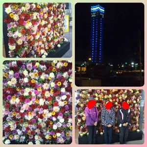 おはようございます。昨日今日と秋田でシニアの大会。ホテル近くにセリオンタワーがあり、夜はライトアップ✨✨ 側にセリオンガーデンがあり、沢山花が散りばめられた場所で写真撮ってもらいました。花好きには絶好の場所。