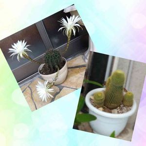 🌵サボテン🌵 頂き物の🌵で 左の🌵は 花盛丸であってますか? お✿は前に 咲いた時のものです 右の🌵の名前が? 前に伊豆のお土産で 寄せ植えのサボテン🌵を頂き全部☆😅 思い出が‥😓