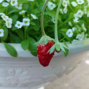 🍓ワイルド ストロベリー 水やりして気が付き アリッサムと一緒に 🍓を📷 (*˘︶˘*).。.:*♡