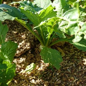 去年は🌱が出ず、全滅だったカブラ 今年は ビニール紐に5センチ間隔に種が入ってるのを5メートル買ってきて、植えてみました 無事🌱が出揃い ホッとひと安心 自家製はみずみずしくて甘い❗ たくさん要らないけど、ぜひ欲しい野菜です お漬け物に