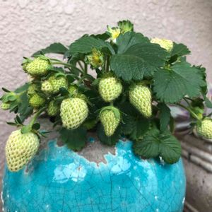 5つ植えたうち 1番よく育ったものです 虫と闘いながらも なんとか出来ました 実がまだ1cmにもなってないものもあるのですが😅 育たない のかな