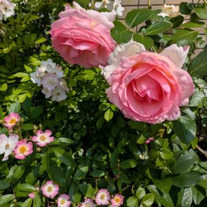 ピエールドロンサール、今年は大きなお花が咲いてくれました。 バレリーナの親株は輪郭はっきりと、こぼれ種からのバレリーナは薄いピンク色で、可愛く咲いています🥰