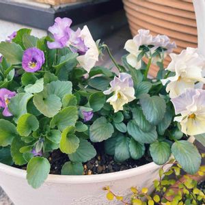 パープル系のバレリーヌのチュチュさんと 同系色のシエルブリエさん(ほぼ白💦) 花数が多いチュチュさんの勢いに押され気味ですが、春にはもう少し色も鮮やかになってくれると良いな…