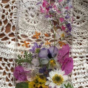 押花でスマホケースを作ってみました😃✨ レジン楽しい❣️ ハマりそう🌸 今度は立体のドライフラワー を使って小物を作ってみまーす(^^)