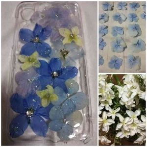 押し花でスマホケースを作ってみました。 チマチマ押した紫陽花,イングリッシュブルーベル🔔,マーガレット,ネモフィラ,クローバー🍀 スマホを持つのがより楽しみになるかな? 色味が抜けないといいのだけどね〜💦