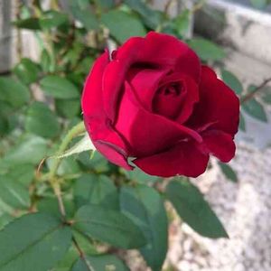 おはようございます( ͒ ु•·̫• ू ͒) 朝から・・・お庭にスウェットと、眼鏡とチョンマゲで、お庭散策してきました(〃ω〃) お休みの日の5時半は、人っ子一人歩いてませんでした(〃ω〃) ふふふっ(〃ω〃) picの子は、クリムゾングローリーさんです(〃ω〃) いつも、1番初めに咲く赤バラさんです( ´艸`) 植え付け場所が悪くて、 隣の横張カフェさんに追いやられ、日陰にされ、 ただ今シュート1本立ちです(。-∀-) あまりにかわいそうなので、冬に鉢上げしましたが、今季は蕾2つヽ(;▽;) まぁ、一本しか無いし(。-∀-) でも、下の方にシュートが出たので、来年はもう少し頑張ってもらいます❣️ ベイサル出ないかなぁ〜( ૢ⁼̴̤̆ ꇴ ⁼̴̤̆ ૢ)~♡ だって、この赤本当に素敵なのですよ〜( ´艸`) 写真よりもう少し紫寄りですが、香りも良いし、本当に抱きしめたくなるような子です( ´艸`)💕💕 抱きしめたら、傷だらけになるので、とりあえず、いい子いい子だけしておきましたけどね(笑) では、今日も素敵な1日をお過ごしください🍀💕💕