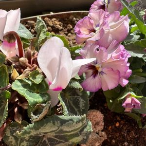 この前の寄植えの続き… 1⃣バレリーヌのチュチュ 2⃣もう1枚 バレリーナの衣装、フランス語だとお尻😅 3⃣パンジー🤍も、🏷一般ジーの会♪
