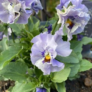 フリンジビオラ(バレリーヌのチュチュ) と葉牡丹 寄せ植えの素材をお迎えしたのですが、なかなか寄せてあげる時間がなくポットのままです😅