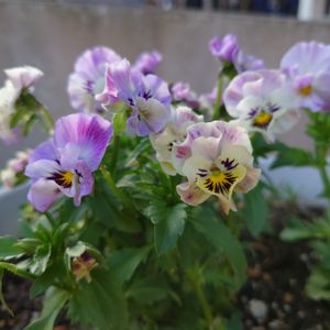 休みの日も、朝は早い🤭 12月に葉牡丹やクローバーと寄せ植えた、フリンジビオラ、バレーリーヌのチュチュ。 4号ポットひとつの苗が大きく育ち、今もこんなに花を咲かせてました。 大きく切り戻し。何度も切り戻して、脇芽が育った大株。3分の1程にカット✂️。豪華な花手水と、テーブルフラワーに。 紫💜の色もだんだん薄くなって、黄色が増えたバレーリーヌ😊ありがとう💕 (2023/4/18撮影)