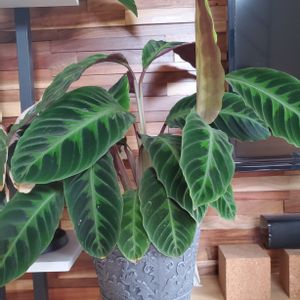カラテア ワルセウィッチーさん 伸びすぎてどうしましょ。。。 真ん中だけみょーーんと。。。 これ、切って刺したら根付くらしいんだけど、この季節ってどうなんだろ。。。 でもこのまま行くとテレビの真ん中にみょーんとなるから苦情くる😂 知ってる人教えてくださーい✨ 今切って刺していいでしょうか??
