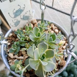 ロスラリア サンドラスダグさん、今1番可愛い時期かも💕 キュッ💚コロン💚としてて、とってもℂüτęෆ⃛*॰¨̮♡ 寄せ植えに入れた方は葉が伸び気味だけど、子株出してて可愛い(*ˊ˘ˋ*)🩷 pic④はうどんこ病になってしまい思い切りカットしたミセバヤ 新芽が出てきた✨今度はうどんこにさせないからね!!(ง •̀ω•́)ง🔥