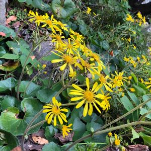最近赤系のお花や木の実の写真が続いたので今日は黄色に!。 ツワプキがたくさん咲いてます。 子どもの頃やけどをすると父親がツワプキの葉を火であぶって貼ってくれたなあ。