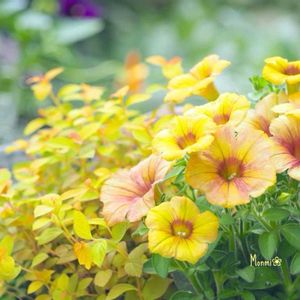 似たような色のカラーリーフと・:*+. ペチュニア アンティーク♪ スピレア(シモツケ)ゼンスピリットキャラメル🌿