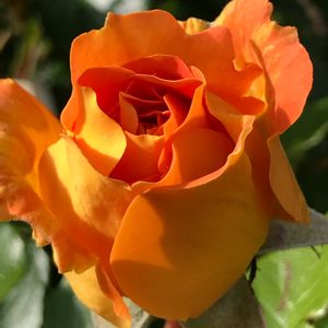 【薔薇】《バラ科》 〝ゴルデルゼ” 独 タンタウ 1999年作出 花言葉 「愛」「美」 バラが昔から愛と美の象徴であり、 愛する人へ気持ちを伝える花として親しまれてきたことに由来しています。 その美しさは『花の女王』とも言い表されるほど。 🧡オレンジ色の花言葉 「無邪気」「魅惑」「絆」「信頼」 「すこやか」「愛嬌」 クラシカルな花形と 橙色を帯びた黄金色が魅力的 ベルリンの有名な戦勝塔の女神像の 愛称より取られた花名。 🏷月曜日にビタミンカラーに参加します 🧡💛。 2022.5.15