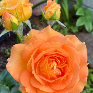 ゴルデルゼ🌹💕✨ オレンジ🍊色が鮮やか🧡🥰 房咲きになってて 一気にたくさん咲きます( ^∀^)💖 リオサンバより香りは弱いですね 花びらはとてもみっしりで 花もちがいいです🌹 水曜ローズショーに参加しまーす♪