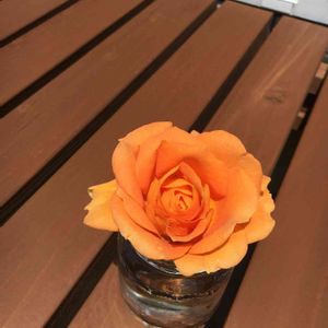オレンジの薔薇、ゴルデルゼ。 我が家に来て、初めて やっと1つ咲いた💗写真撮ろう♬とスマホを取りに行った次の瞬間、 ブチ「おハナ〜🤗」 やってくれるぜ、我が家のモンスター。ビオラとは違うのだよ😭笑 貴重な1番花は、早々に一輪挿しになりました🌹 蕾はあと2つ。次に期待❗️