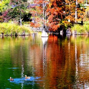 ラクウショウ いい天気です。 水面に映る姿を意識して撮りました。 カモたちが泳いでいました。