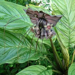 タッカシャントリエリ ブラックキャット デビルフラワー バッドフラワーとも 東南アジア原産 タシロイモ科 またまた出会っちゃいました 何度見ても不気味な花なのよねぇ😆 右側の花が可愛いい😃 やっぱり花なのね タシロイモ科って他にどんな花が❓🤔