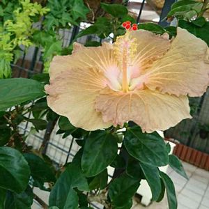 ハイビスカス アルル・ナジャ ちょっと色が薄くてもう終わりなのかな 季節問わず見られるって嬉しい😉👍✨